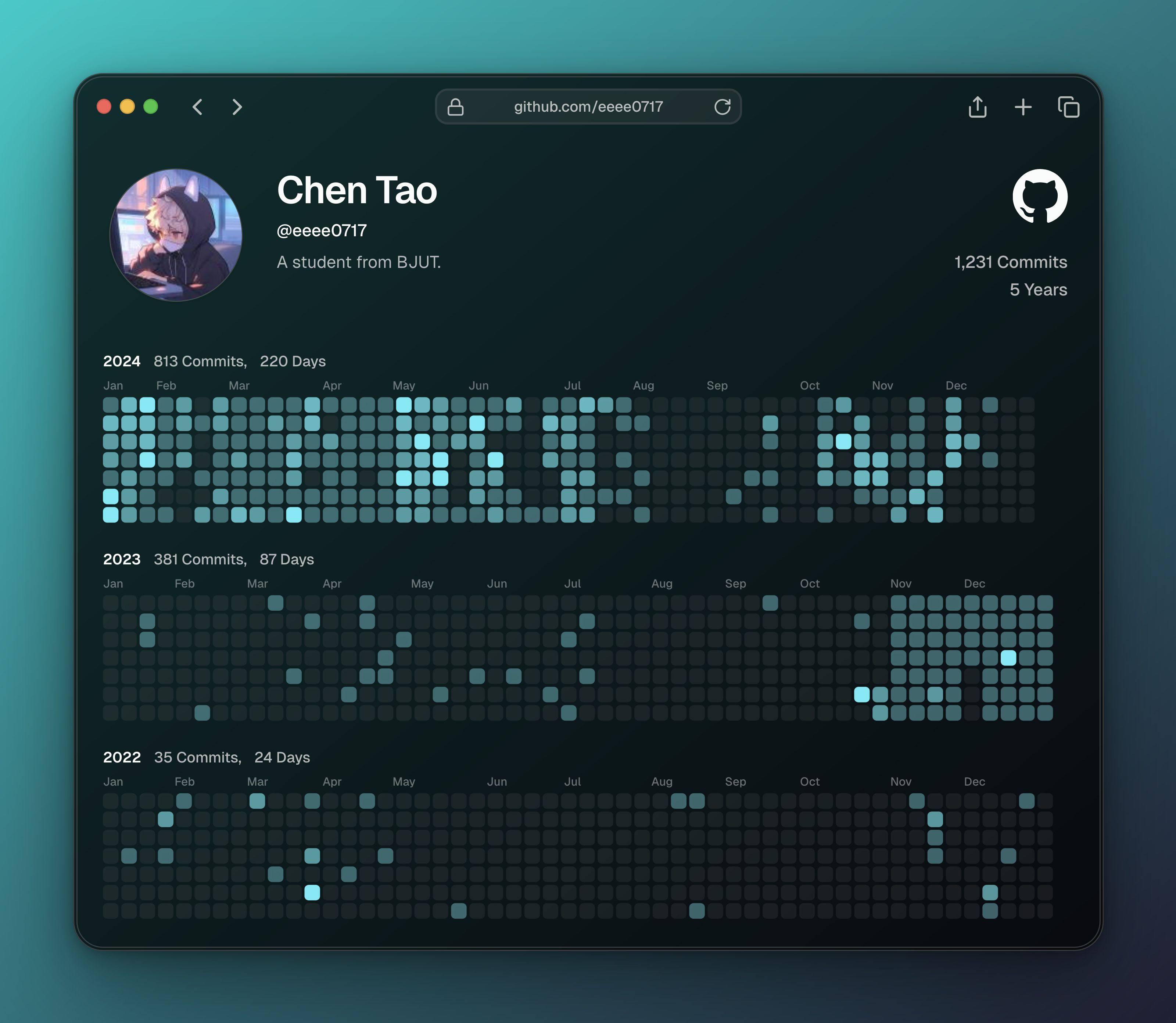 2025年即将到来,23年对commit⬆️1k的目标没有达成,不过也正常,毕竟没有那么多点子,甚至今年的一些commit还是刷LeetCode的题目。不过朝着这个目标前进总没错,超过500commit/年就已经超过GitHub上5%的人了,这也是一个不错的成绩。